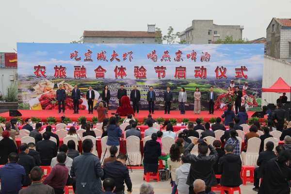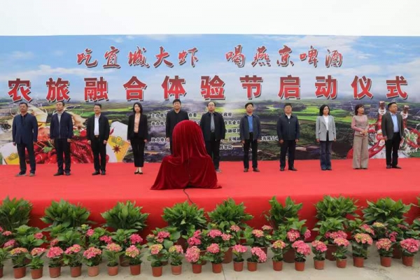 市领导武义泉、陈进雷、李源等一起按下启动球,正式启动“吃宜城大虾 喝燕京啤酒”农旅融合体验节。