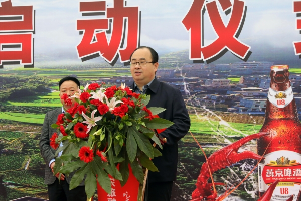 市委书记武义泉致辞。武义泉指出,潮平两岸阔,风正一帆悬。宜城正在系统发力、蓄势跃升,从政策、资金、资源等方面对农旅融合产业给予大力支持,广泛开展招商活动,促使一批农旅融合产业在宜城落地扎根、开花结果;将推出更多的“乡村一日游”美食体验线路,让八方宾客来宜城后,有好玩的、有好看的、有好听的、有好吃的、有好住的,流连忘返,不虚此行。同时诚挚邀请全国各地的游客、企业家和媒体朋友们走进宜城、了解宜城,携手书写宜城新时代高质量发展新篇章!真诚期待大家在“享田园风光、吃宜城大虾、喝燕京啤酒、品农家美食”的同时,用镜头聚焦宜城精彩瞬间,用微信朋友圈、短视频等传递美食美景,让更多的人为宜城点赞,为宜城喝彩!