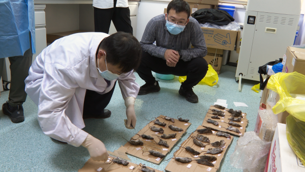 在田间地头,专家们对前一天布置的捕鼠夹进行一一回收,共捕获黑线姬鼠等50只。在宜城市疾控中心实验室,专家们对捕获的老鼠进行解剖,并将取得的样本一一分装,拟带回省疾控中心实验室进行检测。