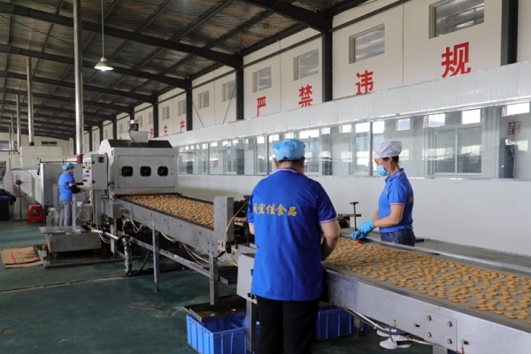 近日,记者走进位于宜城市南营办事处南洲村的湖北闽宜佳食品有限公司生产车间,一条100多米长的自动烘焙饼干生产线正在有序运转,工人们正忙着操作机器,挑拣、包装等紧张有序,抓紧时间赶订单。