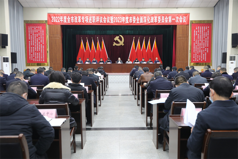 本网讯通讯员李振清 记者周波 李勤报道:2月23日,宜城市委书记武义泉在财培中心主持召开全市2022年度全面深化改革述职评议会暨深改委2023年第一次会议,学习贯彻习近平总书记关于全面深化改革重要论述和中央、省、襄阳市全面深化改革委员会会议精神,总结了2022年度改革工作,部署了2023年改革重点任务。