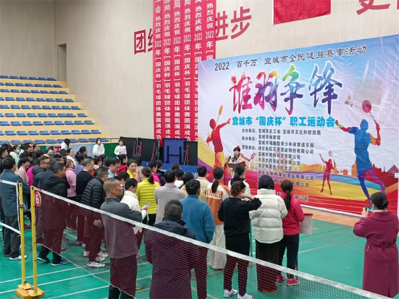 此次羽毛球赛由宜城市总工会、宜城市文化和旅游局主办,为期2天。比赛采用男子单打、女子单打、男子双打、女子双打、混合双打等形式,分为小组赛和决赛两个阶段,通过分组循环赛制、交叉淘汰制方式,最终决出比赛名次。