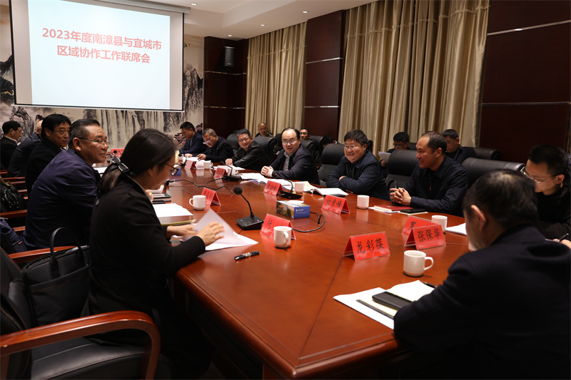 武义泉指出,宜城和南漳山水相连,习俗相通,人文相亲,有着深厚的传统情谊和良好的协作基础,双方通过深化合作交流,区域协作取得了显著成效。近年来,南漳县把党的政治优势、组织优势转化为发展效能,在县域经济高质量发展、重点项目建设、有机特色产业发展、文旅融合发展等方面取得优异成绩,为宜城加快发展提供了经验蓝本。今后,宜城将把"宜城市·南漳县"省内区域协作帮扶作为推进襄宜南一体化发展、高质量建设襄阳都市圈的重要平台,持续加大对南漳的支持力度,持续深化产业、就业、文旅、消费、人才和乡村振兴等领域的合作,为区域协调发展、融合发展打造新引擎、增添新动能。