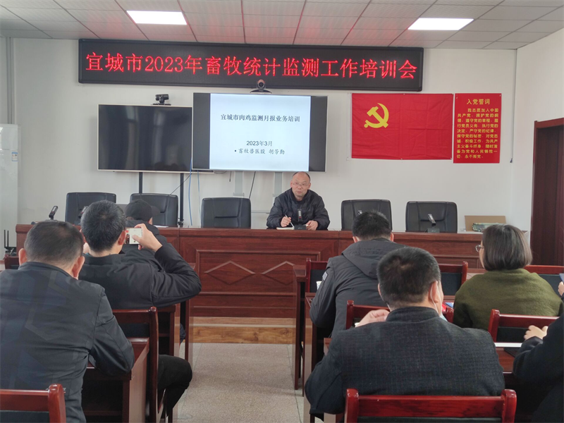 本网讯记者钟军 通讯员胡芳勤报道:3月27日上午,宜城市2023年肉鸡监测工作现场培训会在农业农村局召开,来自南营街道、小河镇、雷河镇、王集镇的20家肉鸡监测场负责人和乡镇信息采集员参加会议。