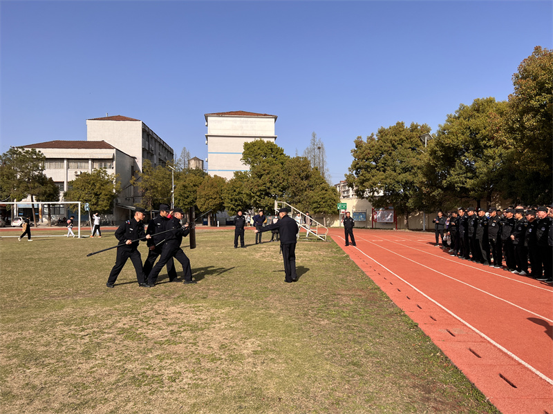 考试结束后,警务实战培训教官对所有参加考试的保安员进行安防器材的使用培训并现场演练。
