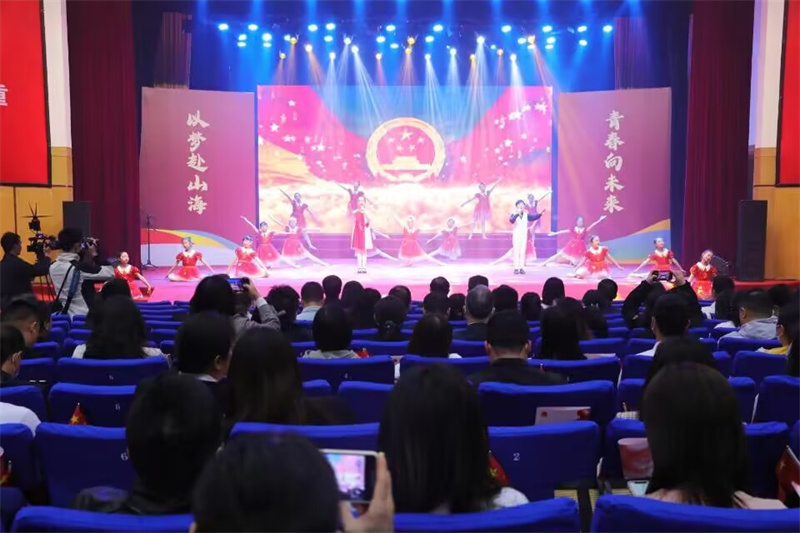 市领导武义泉、蒙瑾、廖华荣、陈珊参加活动,并和老团员一起为新团员代表颁发团章、佩戴团徽;598名新团员在现场及直播平台前起立,面向团旗,进行了庄严的入团宣誓,老团员重温入团誓词;入团介绍人代表宣读了《团章》中有关团员的义务和权利的内容;新团员代表表达了传承先烈精神,以青春之我、奋斗之我谱写壮丽青春的坚定决心;全体团员齐唱《中国共产主义青年团团歌》。