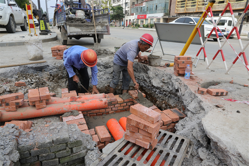 本网讯记者李勤 周波报道:6月1日,经过5天连续紧张施工,汉江路东段32个低压入户检查井全部建成。