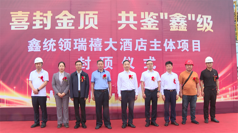 本网讯记者谢子恒报道:6月18日,宜城市重点招商项目鑫统领瑞禧大酒店喜封金顶,预示着该项目进入最后冲刺阶段。