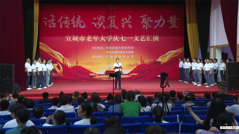 本网讯记者刘毅报道:6月24日,宜城市老年大学在人民会堂举办文艺汇演活动,喜迎"七一"建党节。