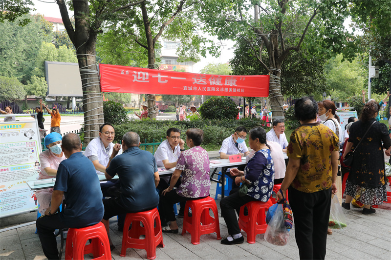 本网讯通讯员张旭东 记者周波 李勤报道:6月27日,宜城市人民医院组织党员医生在市区繁华路段开展“迎七一 送健康”义诊活动,以实际行动献礼党的生日。