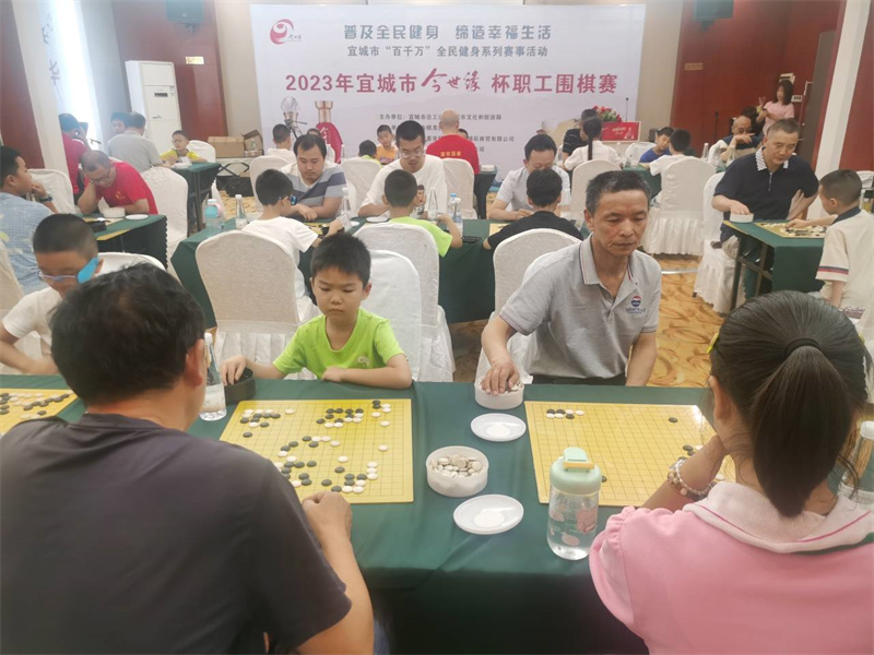 本网讯记者向杰廷 通讯员余阳报道:7月7日至8日,2023年宜城市“今世缘杯”职工围棋赛在豪江国际大酒店举办。10个代表队54名干部职工参加比赛。
