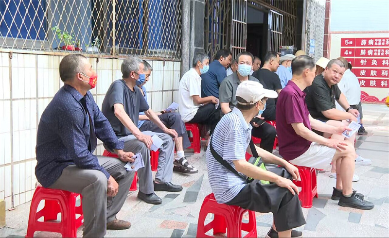 当天,记者在该医院皮肤科、针灸科看到,不少市民早早到来,预约登记,排队拿号,等待敷贴,走道上、科室前坐满了人。