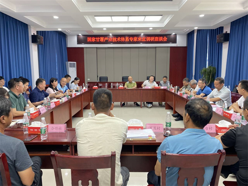 座谈会上,副市长周斌汇报了全市甘薯产业发展情况。