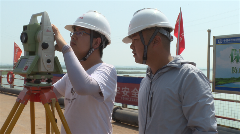 "现在天气比较热,江上也没有树荫,栈桥上全部铺的钢板,上面太阳直射,下面高温蒸的热,工作起来还是比较辛苦的,但是我们作为技术员,现场要全程盯控质量和进度,天气再热,本职工作还是要做好,让襄荆高铁早日建成通车。"襄荆铁路一标中铁大桥局技术员杨启迪说道。