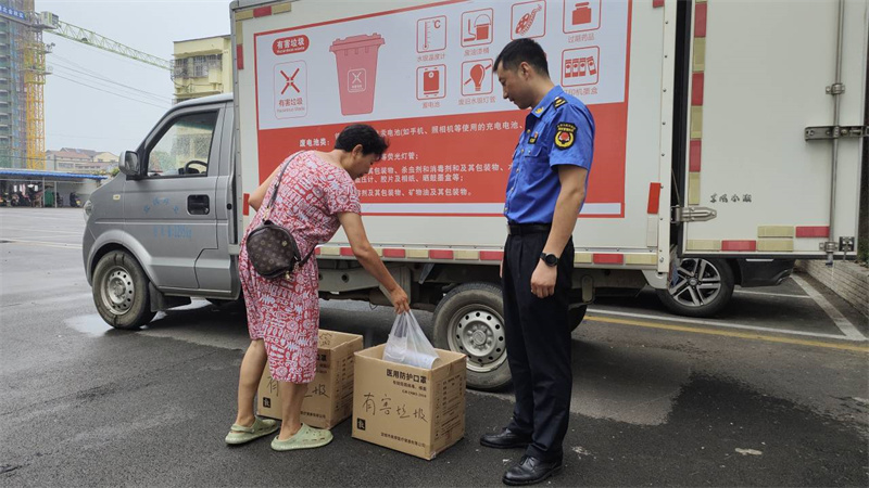 同时,还开展了"有害垃圾收集日"宣传活动,部分居民积极的将自己家里的有害垃圾带到现场进行投放。
