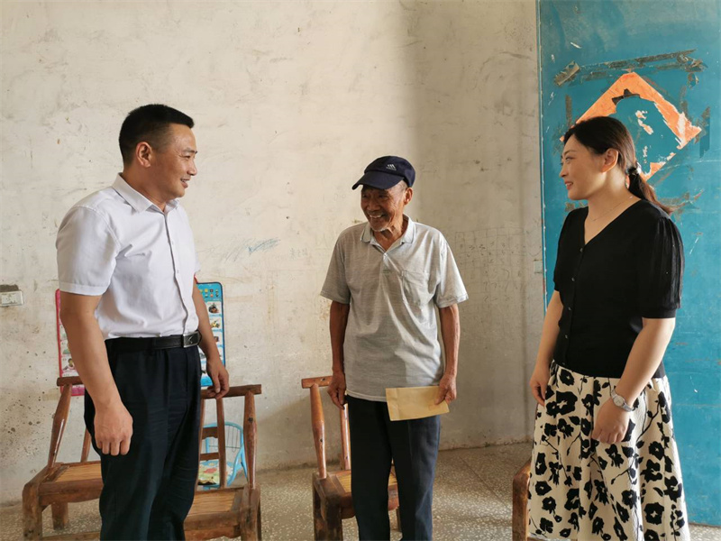在槐树村退役军人刘丕教家,魏迎庆与他促膝长谈,详细询问他家的生产生活情况。今年61岁的刘丕教退伍后积极参加地方建设,先后担任槐树村民兵连长、治保主任、党支部副书记、党支部书记,荣获楚都楷模、全省基层优秀党支部书记等荣誉。魏迎庆感谢他为地方经济社会发展作出的贡献,希望他充分发挥老党员的优势和作用,多为当地乡村振兴工作出谋划策、献计出力。