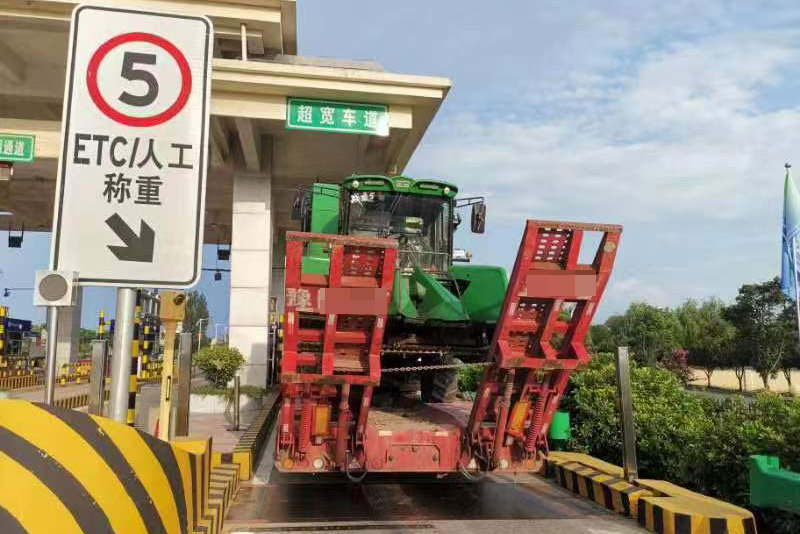 7月27日17时20分许,宜城市公安局交警大队接到麻安高速宜城收费站工作人员报警,称一大货车超高超限,货车司机拒交过路费堵塞交通。民警接警后迅速赶到现场,经了解,这辆重型半挂车来自河南焦作,此次装载了两台联合收割机跨省到湖北收割玉米,在宜城站口下高速时,被收费站工作人员告知车辆超高超限,需出具《超限车辆运输通行证》才能免费予以通行。由于该货车过去装载过收割稻谷、小麦的小型收割机,不存在超高超限问题,在高速公路上行驶一直没被收费,此次出门,司机便没有办理《超限车辆运输通行证》,因而受阻。
