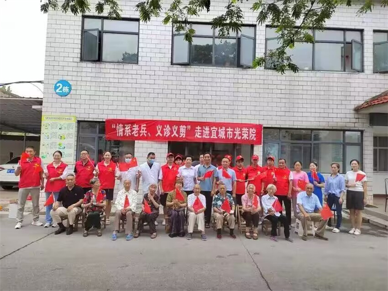 本网讯记者李明磊通讯员常敏报道:7月31日,在中国人民解放军第96个建军节即将到来之际,宜城市关工委、市委老干部局、市慈善总会、余彬医院、诗彩·名师芭莎理发店等志愿服务队走进宜城市光荣院,开展"情系老兵义诊义剪"志愿服务活动,为光荣院老人送上真挚的慰问和节日的祝福。