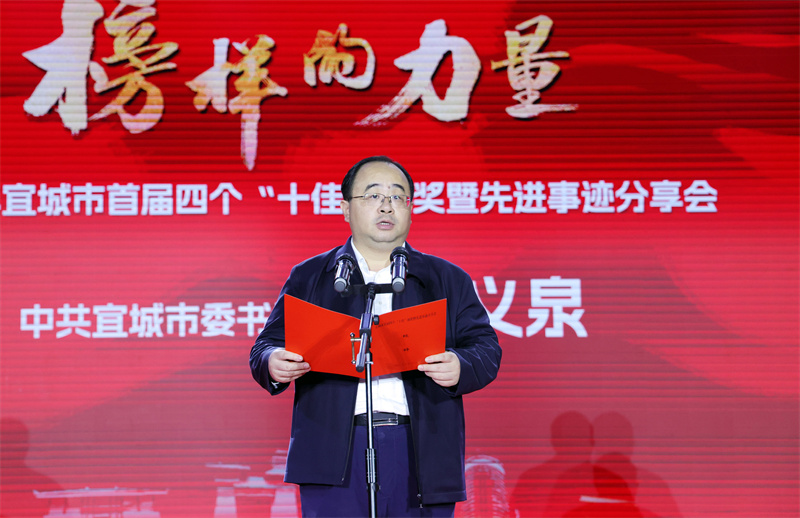 市委书记武义泉向这次受到表扬的“十佳”个人表示祝贺,向奋战在基层一线的同志表示诚挚的问候。武义泉在致辞中指出,近年来,在七届市委的坚强领导下,全市各级党员干部坚持以习近平新时代中国特色社会主义思想为指导,团结带领广大人民群众,勠力同心、砥砺奋进,有力推动了全市经济社会高质量发展。在各行各业和基层一线,涌现出了一大批勇于担当、狠抓落实的先进典型,他们在改革发展主战场大显身手,在乡村振兴第一线攻城拔寨,在急难险重最前沿无私奉献,在服务群众最基层建功立业,他们用行动诠释时代精神、展现奋斗风采、彰显使命担当,为我们树立了标杆,作出了榜样。今天受到表扬的“十佳”先进个人,是全市党员干部中的佼佼者,他们追求理想的执着、高度负责的态度、忘我奉献的精神,值得全市各级党组织、广大党员学习!希望这次受表扬的个人珍惜荣誉、再接再厉!