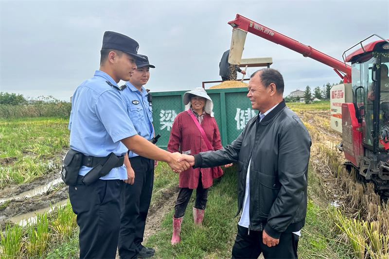 本网讯通讯员汤洁 党芸菲报道:连日的阴雨天气,总算迎来了短暂的艳阳天,宜城市公安局郑集派出所敞开大门,变身“晒粮场”,让村民将稻谷晒进院内,不料大雨突袭,民辅警纷纷帮忙抢收,终于保住了收成。10月1日,村民的家人走进郑集派出所,硬塞给民警一袋水果致谢,被拒后放下就跑……