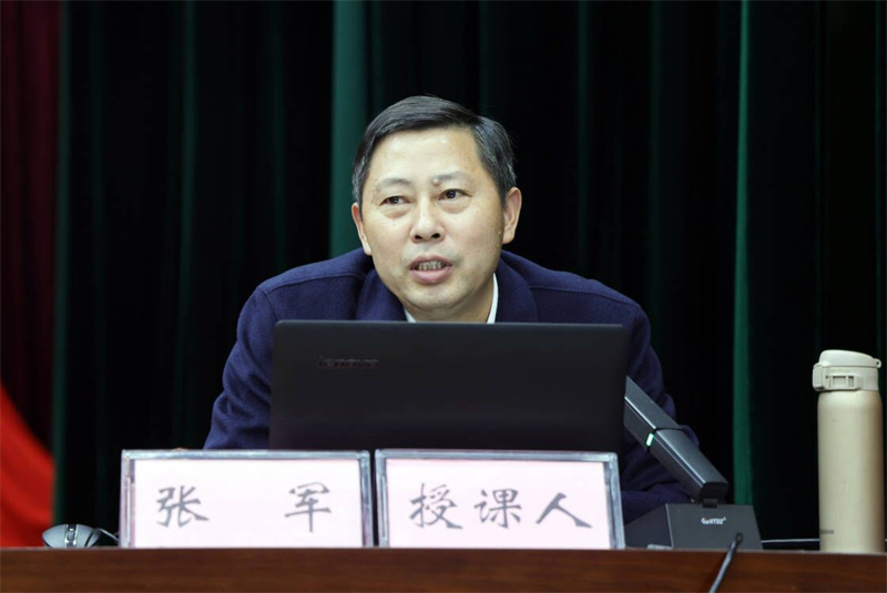 湖北经济学院教授张军应邀作学习习近平新时代中国特色社会主义思想专题辅导报告。他全面系统讲解了习近平新时代中国特色社会主义思想的科学体系,深刻阐释了包括“两个结合”“六个必须坚持”在内的习近平新时代中国特色社会主义思想的立场观点方法,视野开阔、论述精辟,对大家更好理解、把握和运用习近平新时代中国特色社会主义思想提供了有力指导。