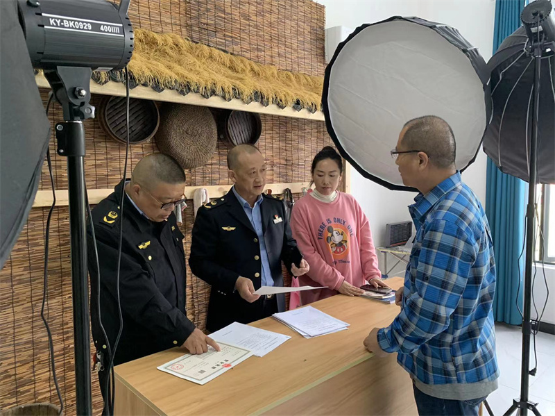 工作人员走进直播间,详细了解了企业的经营状况、存在困难及发展规划,对直播电商营销中常见的广告发布、商标注册、专利申请及12315、12345投诉举报等相关问题进行业务指导,就《互联网广告管理暂行办法》相关条款进行解读。