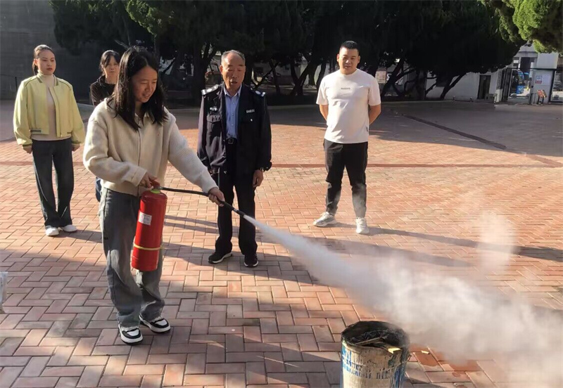 宜城市消防救援队消防员为全体工作人员进行消防安全知识培训。详细讲解了怎样预防火灾、火灾发生时如何正确处置、安全逃生等基本知识,并现场示范了灭火器的使用方法。参与人员个个听得聚精会神,积极踊跃学习和体验实操灭火练习。