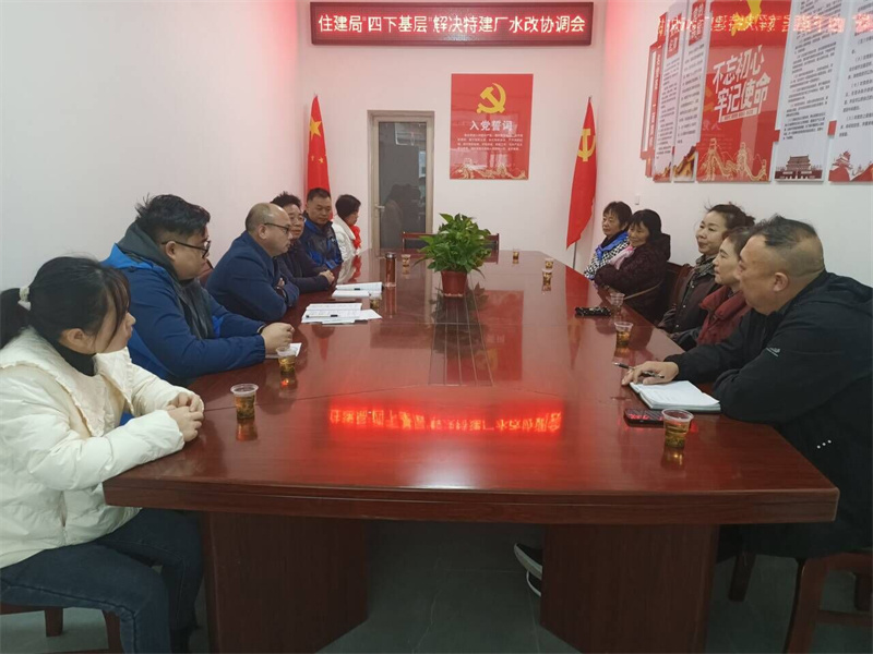 本网讯记者李勤 王楠报道:11月16日上午,宜城市住建局组织召开“四下基层”协调会,集中解决特建厂水改难题。市住建局、供水公司、自忠路社区相关负责人和特建厂居民代表参加会议。