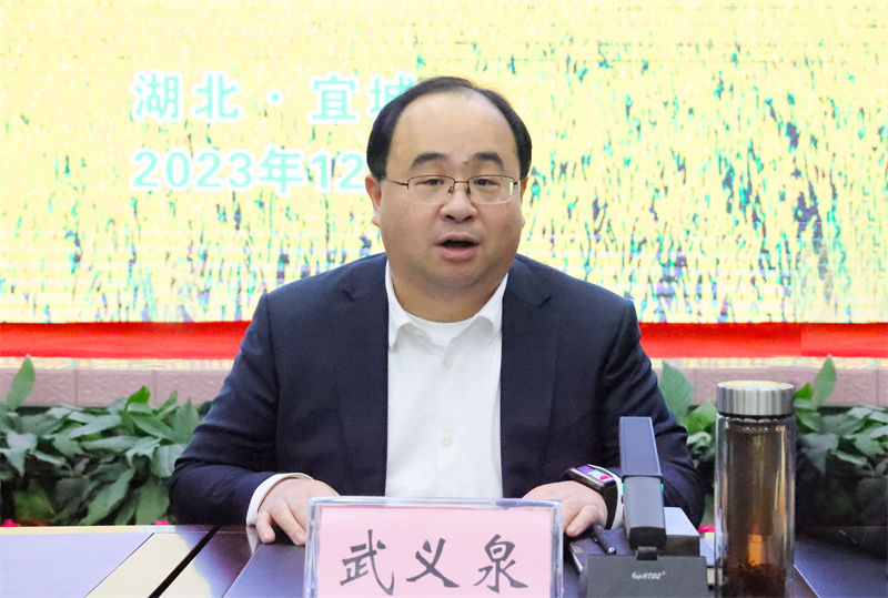 市委书记武义泉致辞。他指出,签订省农业科技现代化先行县(宜城)共建协议,是贯彻中央农村工作会议精神的重要举措,对推进宜城由传统农业大市向农业强市转变具有里程碑的意义。宜城将以农业科技现代化先行县共建为契机,与省科学院紧密深入合作,全面落实“八个一”共建任务,打造农业科技现代化先行县“宜城样板”。