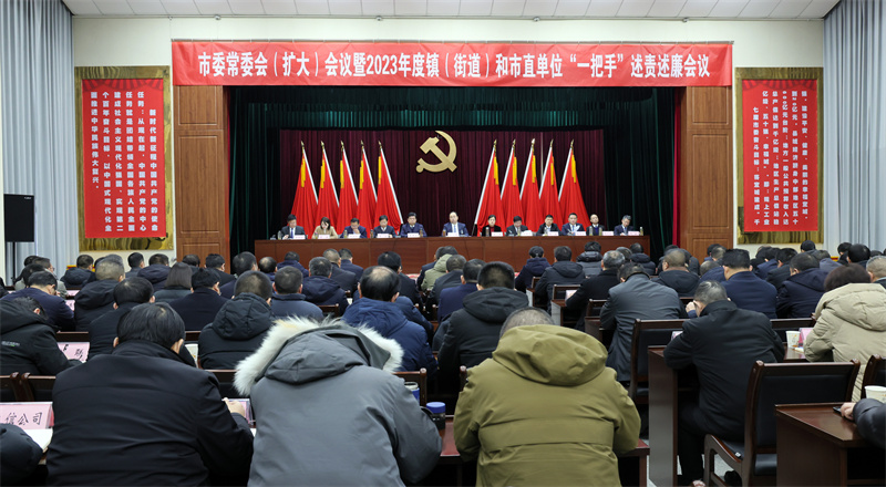 本网讯通讯员邓乐鹏 记者李勤 周波报道:2月23日,宜城市委书记武义泉主持召开市委常委会(扩大)会议暨2023年度镇(街道)和市直单位“一把手”述责述廉会议,听取15个单位“一把手”述责述廉。肖平、李曙东、陈进雷、李源等市“四大家”领导参加会议。