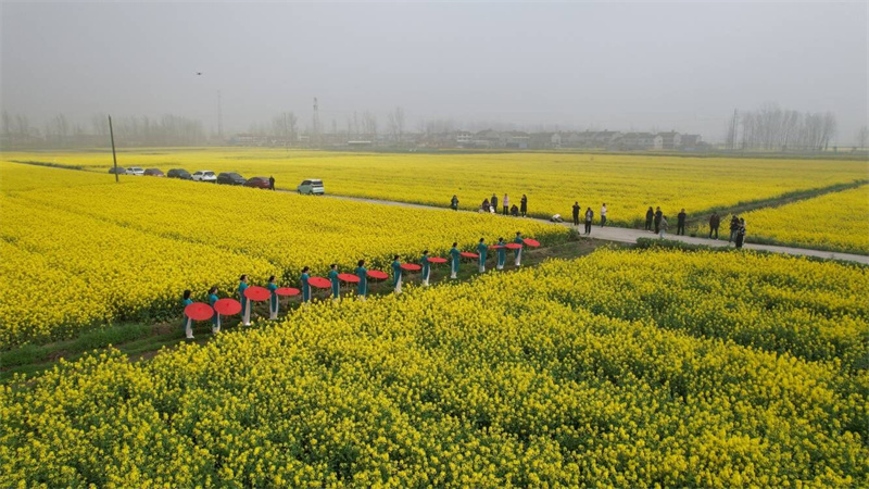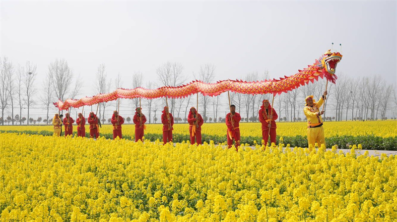 ÔÚÓͲ˻¨µÄÌï¼äµØÍ·£¬Ò»³¡±ð¿ªÉúÃæµÄÎèÁú±íÑÝÕýÔÚÉÏÑÝ¡£Óɵ±µØÅ©Ãñ×é³ÉµÄÎèÁú¶Ó£¬ÔÚÌï¼äÎ趯£¬³ÊÏÖ³ö¡°ÏÖʵ°æÁú·ï³ÊÏ顱µÄϲÇ쳡¾°£¬ÎªÕâÆ¬»¨º£ÔöÌíÁ˼¸·ÖÈÈÄÖÓëϲÇì¡£