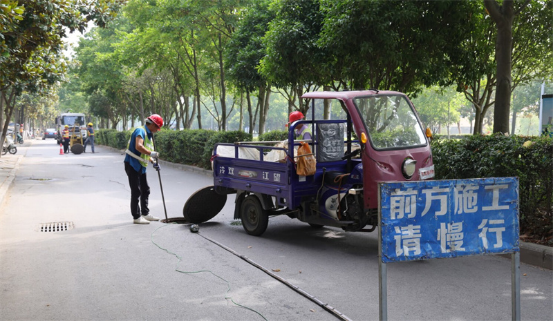 7ÔÂ3ÈÕ£¬¼ÇÕßÔÚÑྩ´óµÀ¿´µ½£¬ÊÐÕþ¹¤ÈËÊúºÃ¾¯Ê¾ÅÆ£¬ÇË¿ª¾®¸Ç£¬ÓýÊÅ̽«¹ÜµÀÄÚÓÙÄàÀµ½¼ì²é¾®ÖУ¬ÓÃÎüÎÛ³µ½«ÓÙÄà³éÅÅ»òÕßÓéÉ×´òÀÌÖÁÔËÊä³µ¼¯Öд¦Öã¬Õû¸öÇåÓÙ¹¤×÷ÓÐÌõ²»ÎɵؽøÐС£