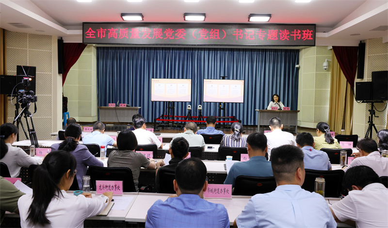 本网讯记者李勤 周波通讯员曹新月 方敏报道:7月4日,宜城市第十一期高质量发展党委(党组)书记专题读书班开讲。市领导陈进雷、李源等参加读书班。