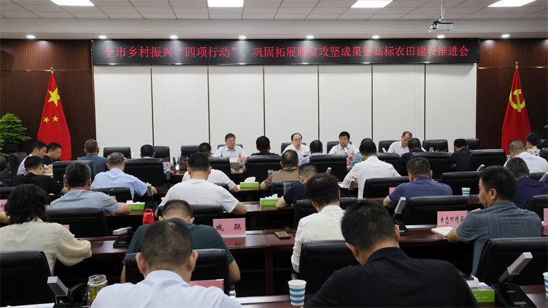 武义泉强调,要察形势明方向,坚决摒弃观望心态,增强紧迫感和责任感,全力以赴将各项工作做实做细,确保圆满完成各项目标任务;要抓重点攻难点,全力推动核心任务攻坚突破,做好“四项行动”拉练准备,打造高康美食街、醉美莺河等示范点位,讲好“移民蝶变”“美食文化”“产业发展”故事,推进环境整治,保留乡村风貌,展现宜城特色和成效;要加快全域国土综合整治与高标准农田建设,建立项目梯次滚动发展机制,加快土地流转,推动项目落地实施;要持续巩固拓展脱贫攻坚成果,以“五访五看”为抓手,狠抓问题整改,加强监测帮扶和就业增收,发展特色产业,备战国家后评估,确保高质量通过考核;要压实各方责任,强化协同联动,形成“一级抓一级、层层抓落实”的工作格局。