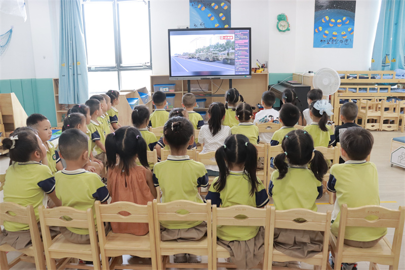 宜城市宋玉幼儿园组织收看纪念中国人民抗日战争暨世界反法西斯战争胜利80周年大会直播。