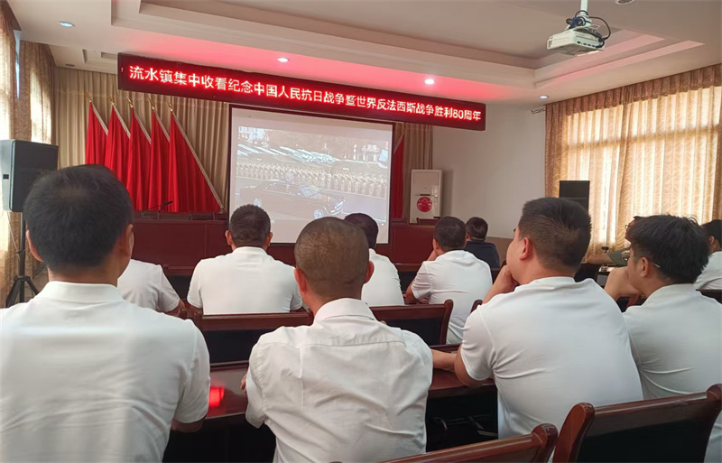 流水镇组织全镇党员干部集中观看纪念中国人民抗日战争暨世界反法西斯战争胜利80周年大会直播,共同回顾峥嵘岁月,缅怀革命先烈,汲取奋进力量。