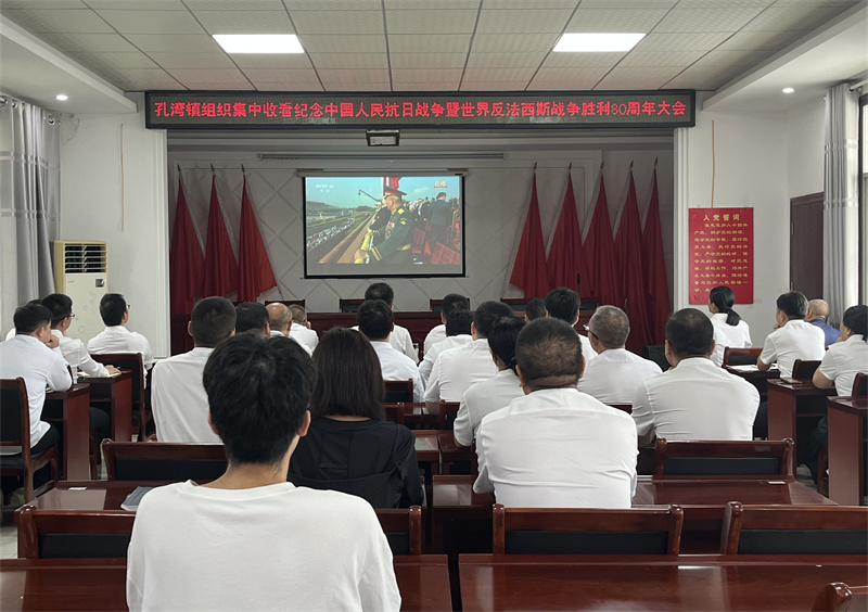 孔湾镇组织全体机关干部集中收看纪念中国人民抗日战争暨世界反法西斯战争胜利80周年大会,并开展“铭记历史、缅怀先烈”主题党日。