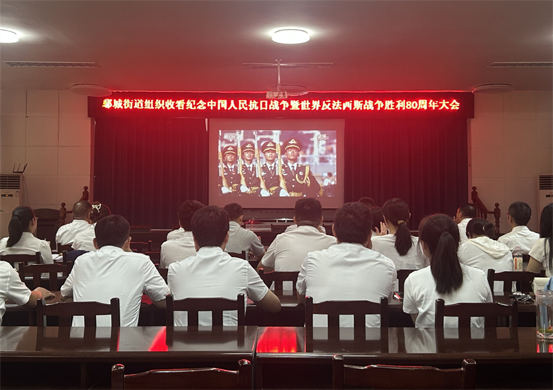 鄢城街道组织各村社区干部、全体机关干部收看纪念中国人民抗日战争暨世界反法西斯战争胜利80周年大会,共同缅怀抗战历史,汲取奋进力量。