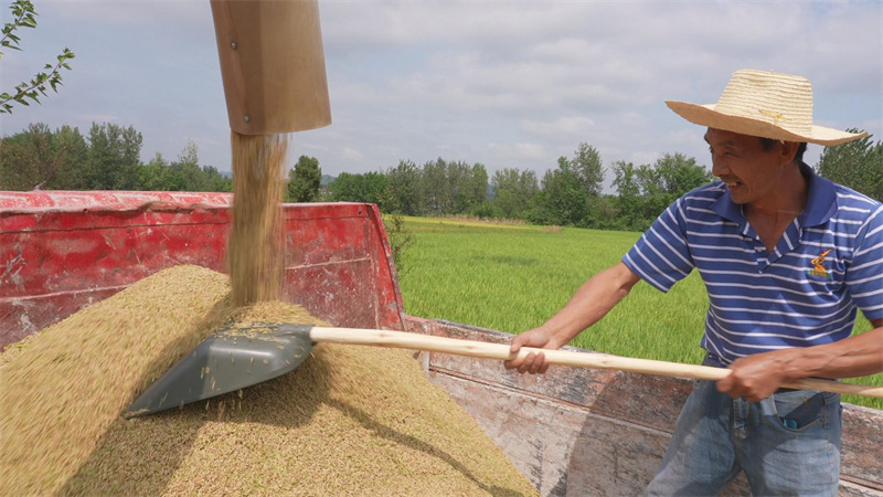 Õ¾ÔÚÌ﹡ÉϵÄÕÔ¾×´åÈý×éÅ©Ãñ¼ÖÃ÷¿¡ÂúÁ³Ï²Ôã¬Ëû½ñÄêÖÖÖ²µÄ10Ķˮµ¾·áÊÕÔÚÍû¡£¡°½ñÄêË®µ¾Éú³¤ÆÚûÊܸɺµÓ°Ï죬Ԥ¼ÆÄ¶²ú¿É´ï1800µ½2000½ï£¬´¿ÊÕÈëÄܳ¬¹ý1ÍòÔª¡£¡±Íû׎ð²Ó²ÓµÄµ¾¹È±»ÊÕ¸î»ú¾¡ÊýÊÕÈ룬Ëû¸ßÐ˵ØËãÆðÁËÔöÊÕÕË¡£