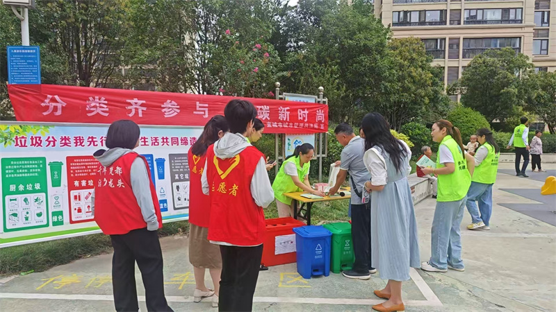 ÔÚ»¥¶¯ÌåÑéÇø£¬ÉèÖõķÖÀàÀ¬»øÍ°Ä£ÐÍÎüÒý²»ÉÙ¾ÓÃñפ×ã²ÎÓë¡£º¢×ÓÃÇÔÚÖ¾Ô¸ÕßµÄÖ¸µ¼Ï£¬½«Ä£ÄâÀ¬»ø¿¨Æ¬×¼È·Í¶Èë¶ÔÓ¦À¬»øÍ°£¬ÏÖ³¡·ÕΧ»îÔ¾¡£