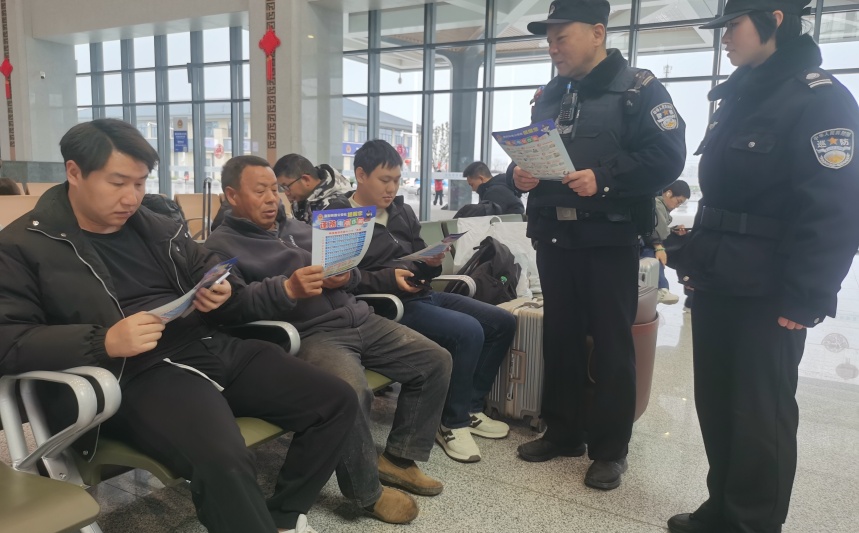 ºò³µ´óÌüÀ°²È«Ðû´«Í¬Ñù²»È±Ï¯¡£Ãñ¾¯ÀûÓÃÂÿͺò³µ¼ä϶£¬Í¨¹ý·¢·ÅÐû´«µ¥¡¢ÏÖ³¡½²½âµÈÐÎʽ£¬¹ã·º¿ªÕ¹·´Õ©¡¢·ÀµÁ¼°½û´øÎïÆ·ÖªÊ¶Ðû´«¡£½áºÏÕæÊµ°¸Àý£¬ÖصãÏòÀÏÄêÈË¡¢·µÐ£Ñ§ÉúºÍÍâ³öÎñ¹¤ÈËÔ±½Ò¶³£¼ûƾ֣¬ÌáÐÑ´ó¼ÒÊØºÃ¡°Ç®´ü×Ó¡±£¬Æ½°²Ì¤ÉϹé;¡£