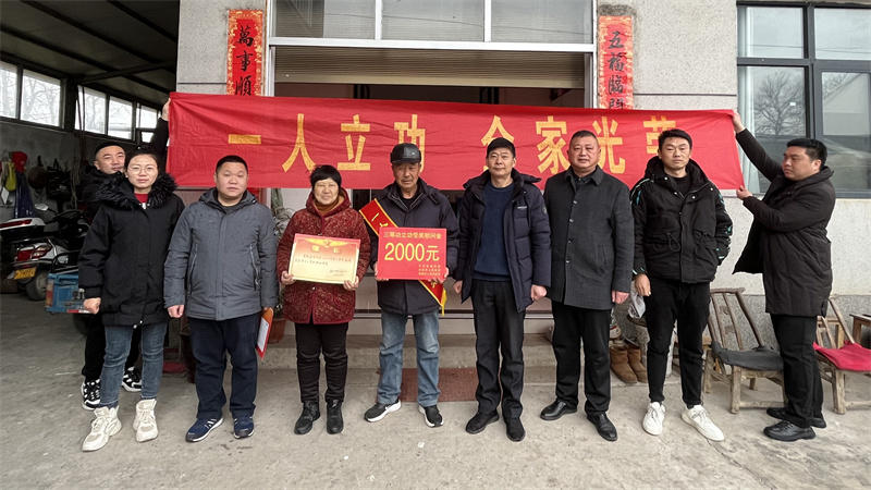 本网讯通讯员李方方 江乐乐报道:"祝贺您啊,您儿子立功了,我们来给您送喜报了!"2月8日,宜城市退役军人事务局联合孔湾镇退役军人服务站,在绵绵细雨中为朱雪峰的家属送去立功受奖喜报,传达党和政府对军人军属的关心慰问。