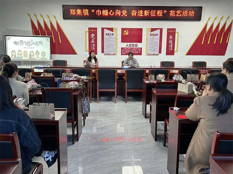 本网讯通讯员宋梓涵 邵芮报道:3月7日,郑集镇组织全体机关女干部和各村妇联主席,开展“巾帼心向党奋进新征程”花艺活动,迎接“三八”妇女节。