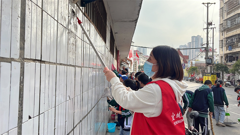 学生李璟文说:“今天我们在校门口参加了打扫卫生的活动,我体会到了环卫工人的辛苦,希望大家能爱护环境,让我们的城市变得更美。”