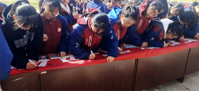 签名仪式上,全体九年级学生执笔签名,许下心愿,全力以赴为梦想而战。