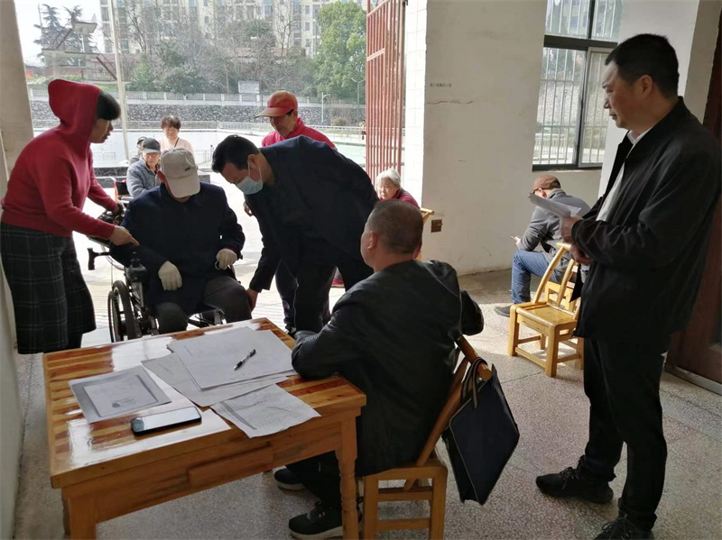 本网讯通讯员胡雪峰 胡梦瑶报道:近日,雷河镇民政办邀请宜城市残联评残专班来到辖区鄂西社区、雷河社区、七里村、前锋村、季莲村等地,为部分行动不便、亲属无法送医、家境困难的肢体残疾人提供上门评残、办证的“零距离”贴心服务。