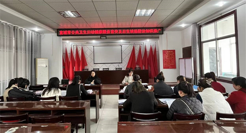 本网讯通讯员温琛报道:3月29日,孔湾镇邀请宜城市妇幼保健院专家对全镇12个村(社区)妇联主席开展公共卫生妇幼健康服务宣传和出生缺陷防治知识推广。