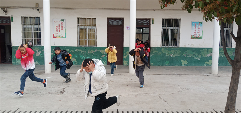鄢城街道白庙小学:防震演练 安全"童"行