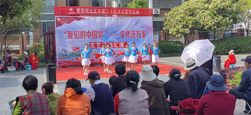 本网讯通讯员高红荣报道:4月10日下午,龙头街道紫阳观社区开展“我们的中国梦——文化进万家”文艺汇演,将党的二十大精神用精彩纷呈的文艺演出送到小区居民家门口。