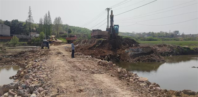 本网讯通讯员朱忠仁报道:近日,在板桥店镇曾桥村危桥改造工程现场,挖掘机、装载机、翻斗卡车轰鸣声不断,一片火热的施工景象。